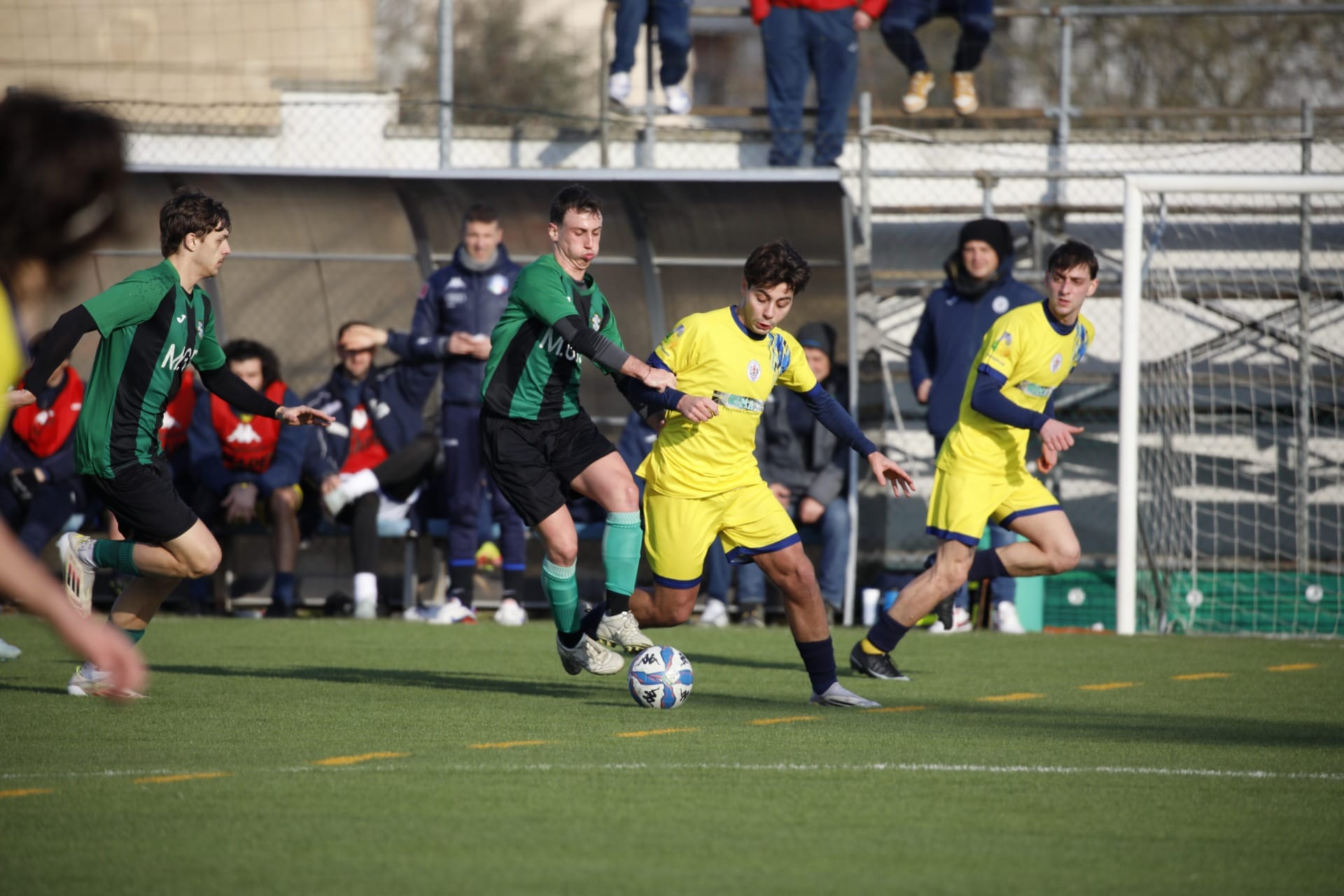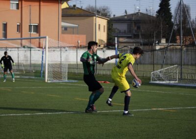 La capolista parte forte e al 16’ Bortolani ha la prima opportunità della gara: cross al centro e l’11 gira di testa ma Alberghini si supera. Lo Junior Finale ha però coraggio da vendere e si rende pericoloso soprattutto su palla inattiva con Veratti che di testa stuzzica Brambilla e poi con Carpeggiani che chiama l’estremo difensore a salvarsi di piede su schema con Pignatti. Prima dell’intervallo la doccia fredda e il Polinago passa: palla respinta su azione d’angolo, Bortolani la rimette dentro forte e Meglioli di testa non perdona.