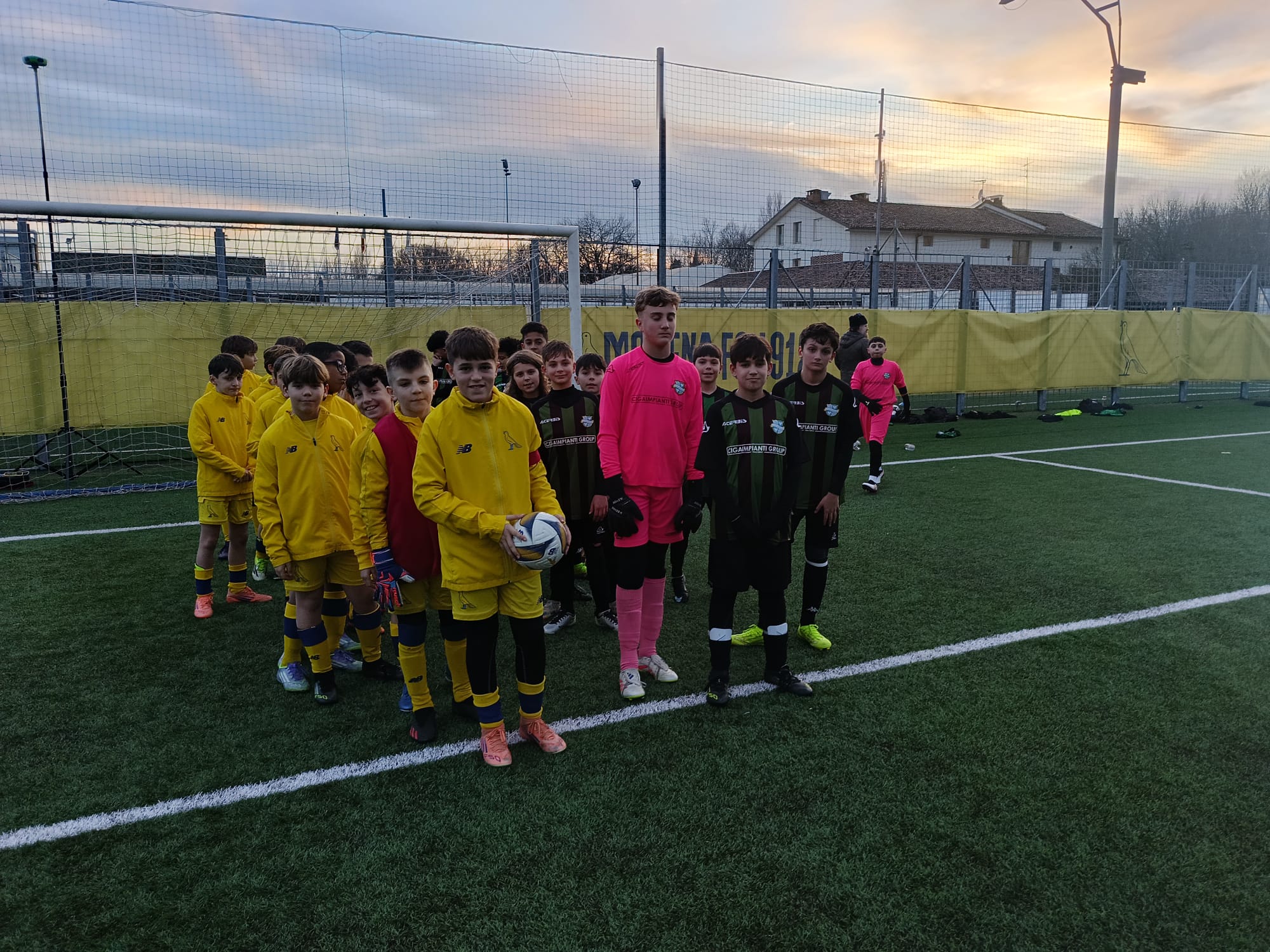 Scendendo nell’attività di base, anch’essa falcidiata dal maltempo, ecco alcune esperienze molto interessanti: gli Esordienti 2014 di Marco Varani e Sabastiano Bergamini si misurano in un bel test match contro il Modena. Esperienza ricca di emozioni per i nostri ragazzini che si misurano con i gialli, società con cui abbiamo stretto un forte legame.