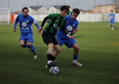 Strada in discesa per lo Junior Finale con Ferri che si accende (27′), si divora metà campo palla al piede, centra per Bernabiti che per un soffio non arriva. Ma è il preludio per il raddoppio: Ferri – ancora lui – scarica per Parola, cross di prima su cui si lancia in tuffo Carpeggiani che di testa fa 2-0.
